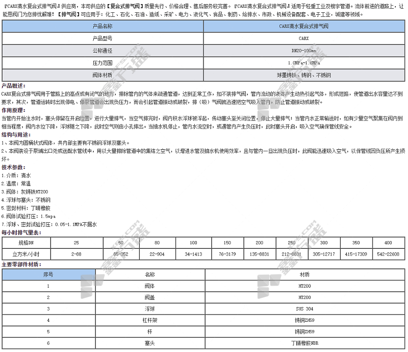 商品名称: 亿源通 铸铁复合式排气阀 DN80 PN16