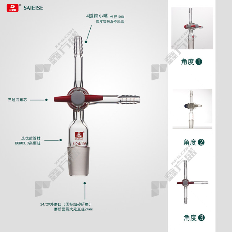 江苏三爱思 三通接头 玻璃阀门 磨口:14/23 A690014