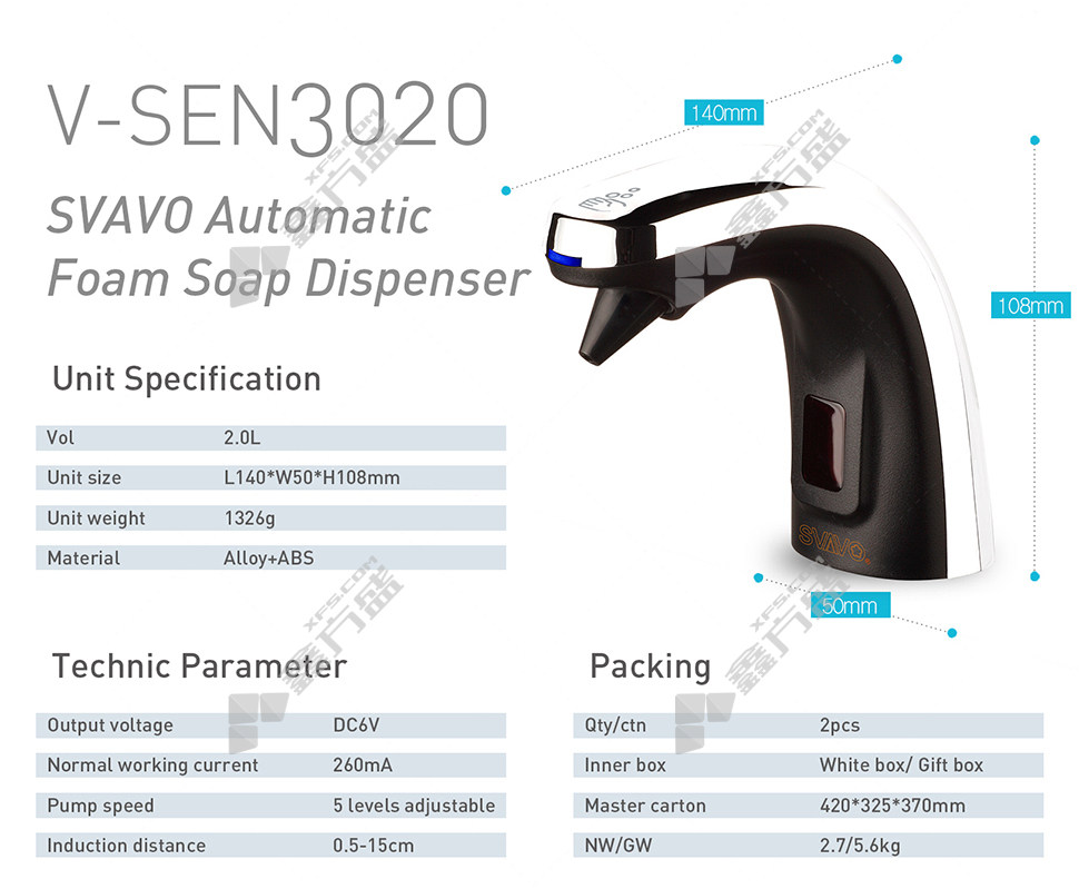 瑞沃 感应水龙头/水龙头式皂液器V-SEN3025 V-SEN3025铬+黑 2L L139*W50*H107mm