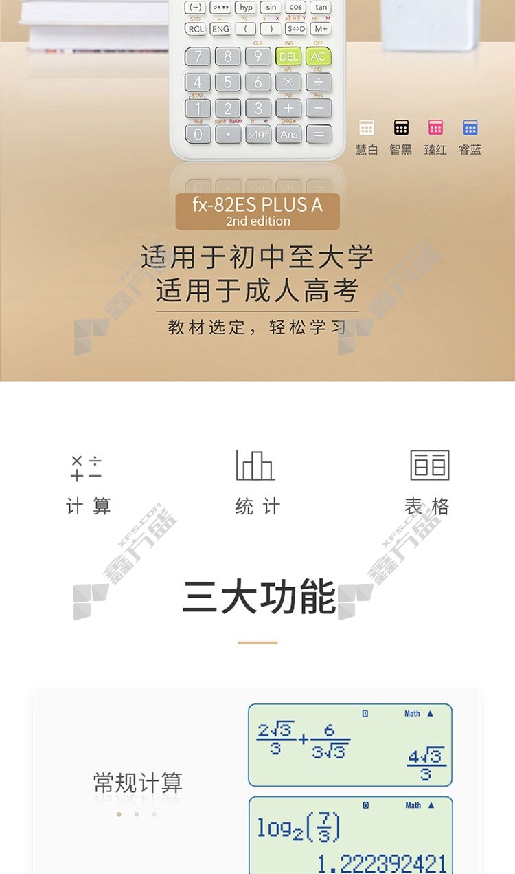 商品名称: 卡西欧 FX-82ESPLSA2 函数科学计算器 10+2位双行数显 不支持语音功能 睿蓝