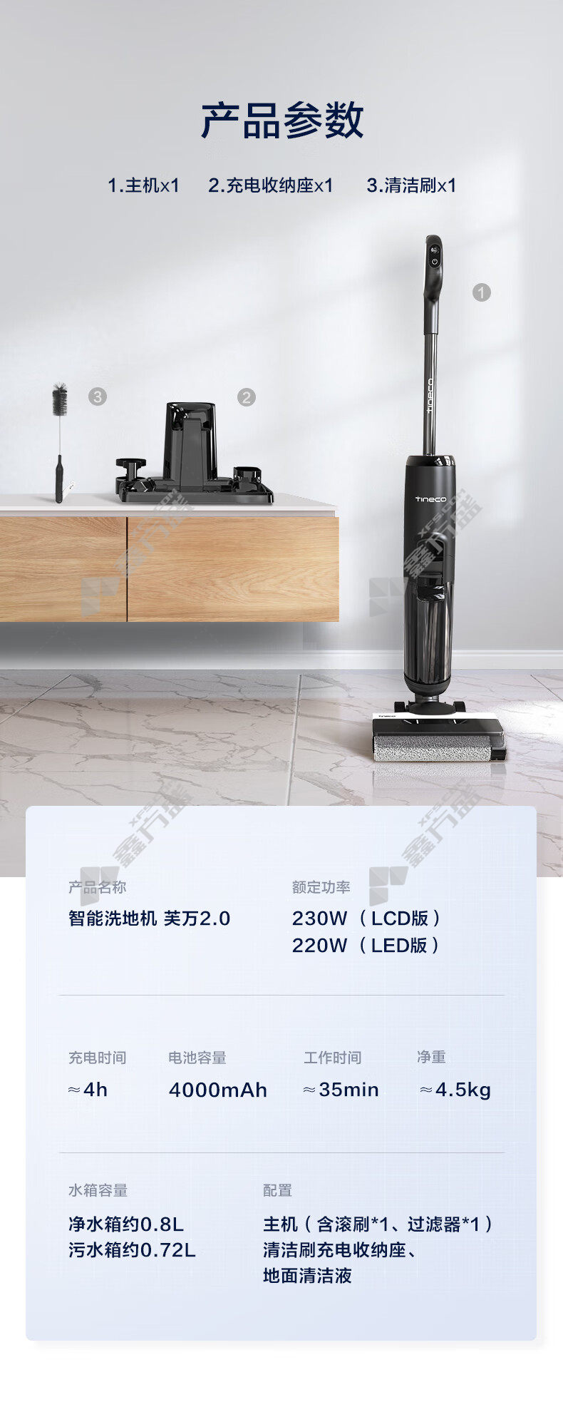 • 2.0无线智能洗地机芙万2.0 LCD家用扫地机拖地吸尘器 FW100100CN