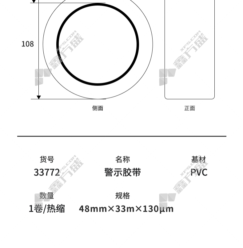商品名称: 得力 33772 PVC 地标警示胶带 48mm*33m 黄色