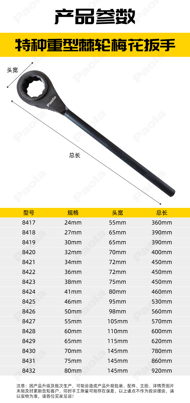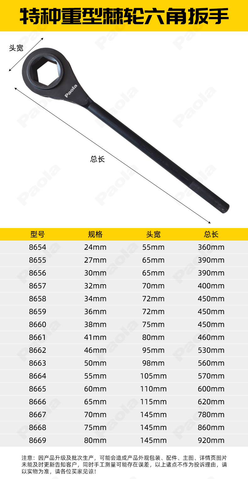 商品名称: 保拉 特种重型棘轮六角扳手 32mm 400mm 8657