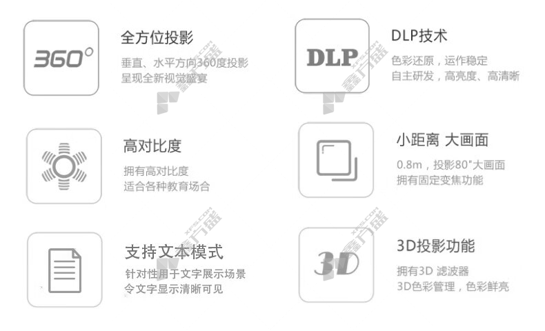 投影仪安装方式:桌上正投;吊装正投;吊装背投;桌上背投;360度投影