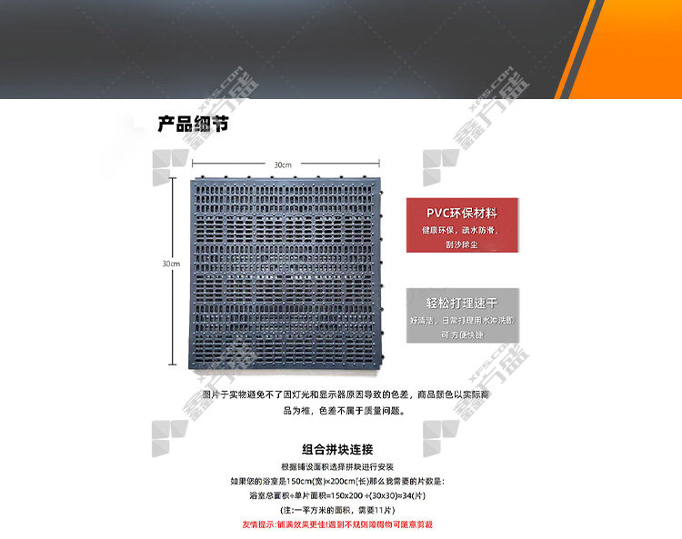 首页 首页 > 德洁 PVC 第三代浴室拼接地垫 30cm*30cm 厚度8mm 克重380g 深灰色(石墨黑)