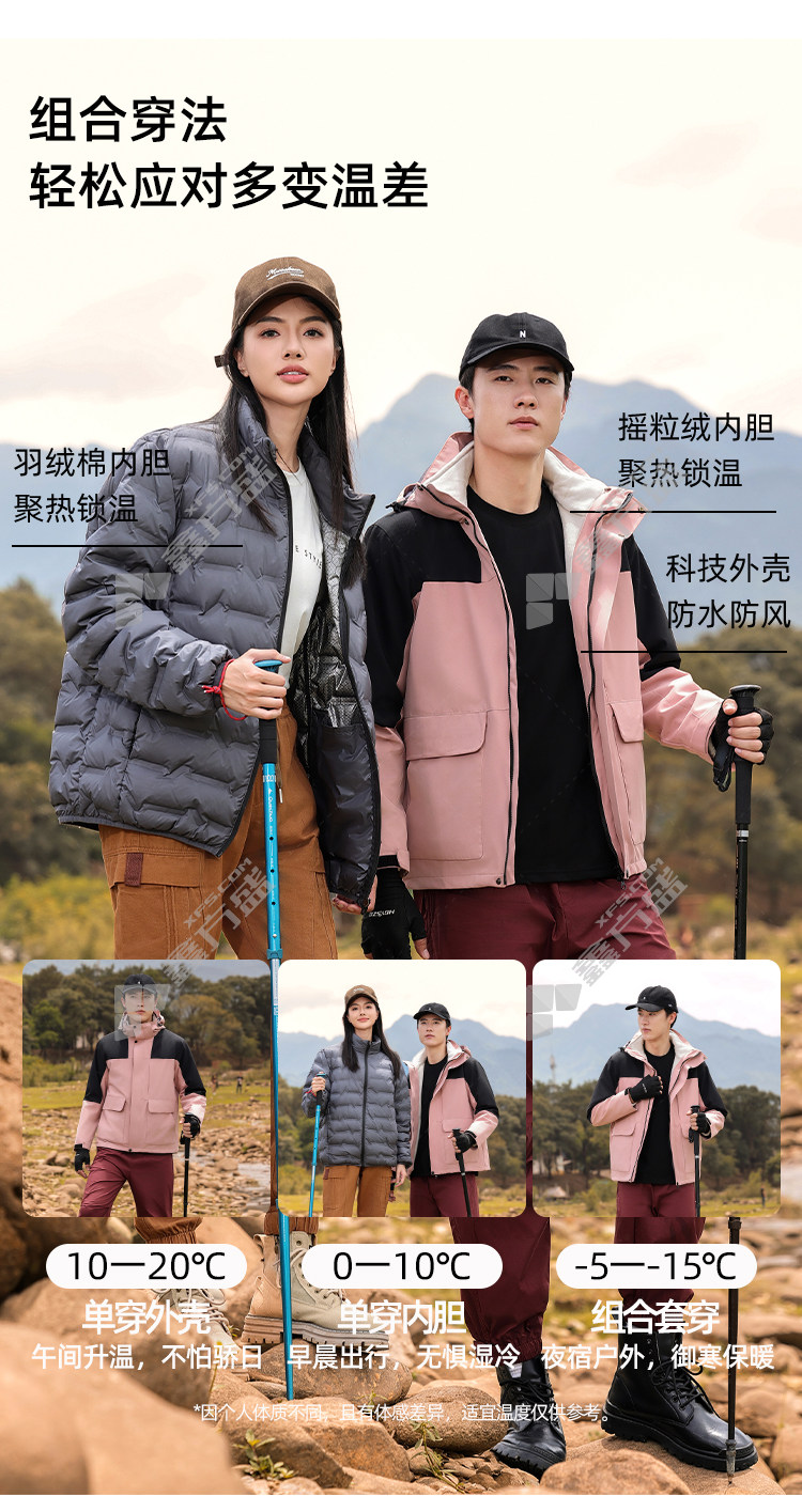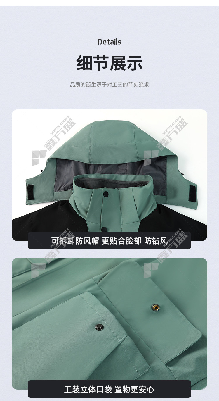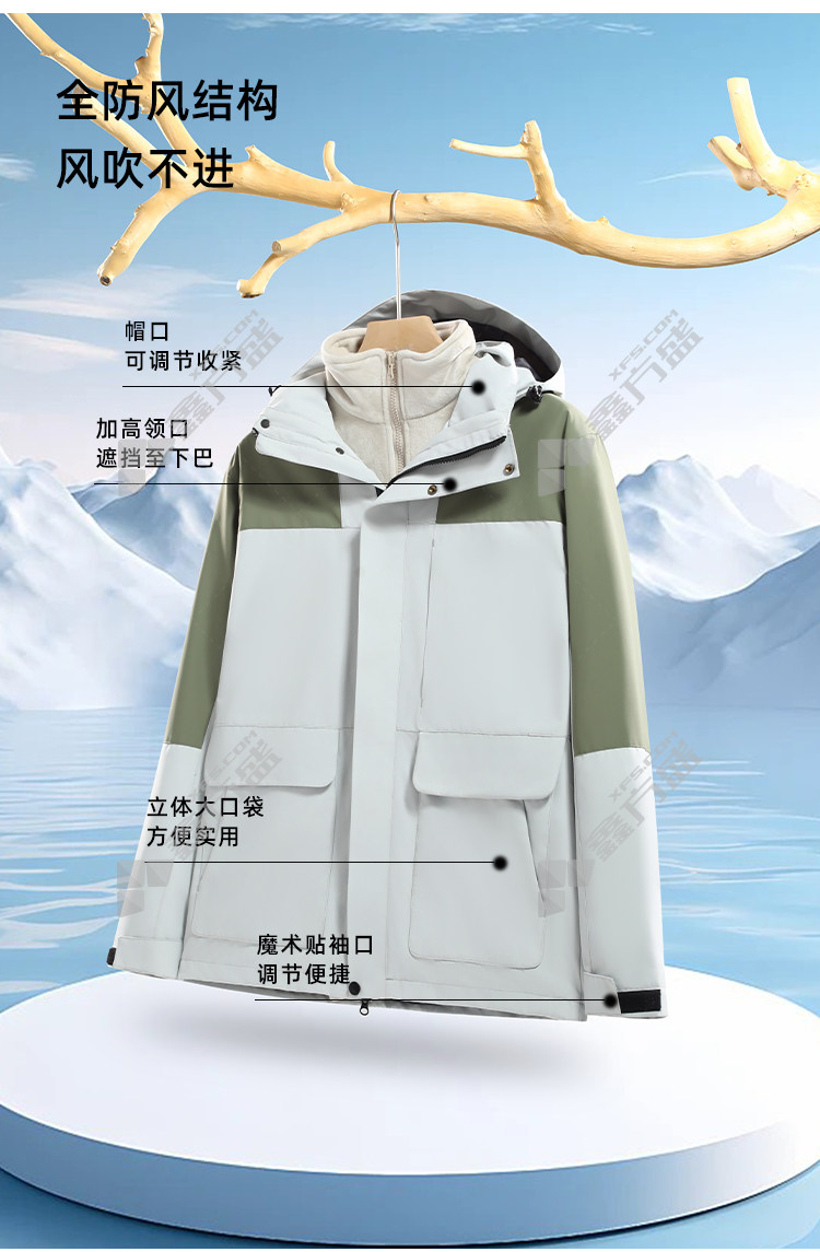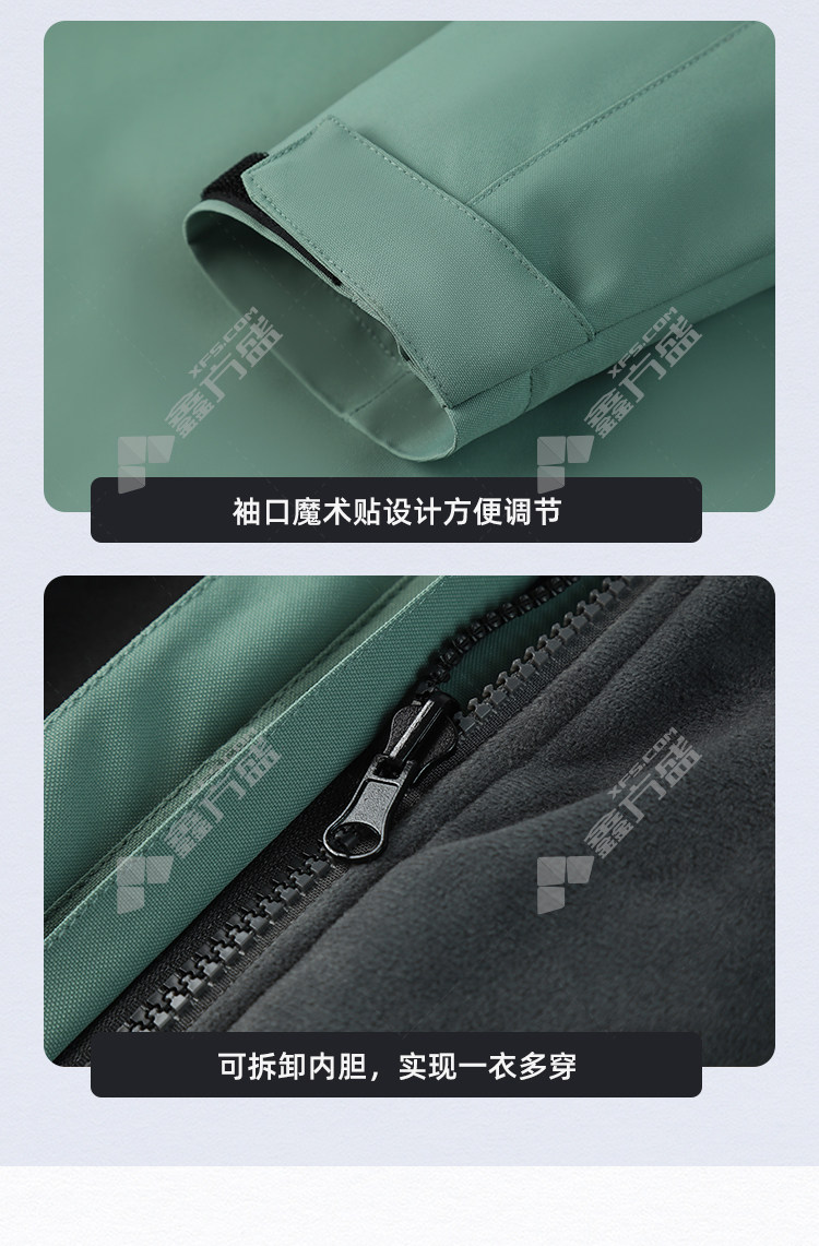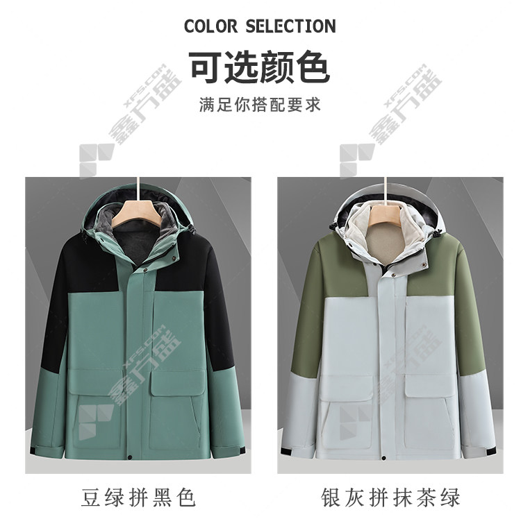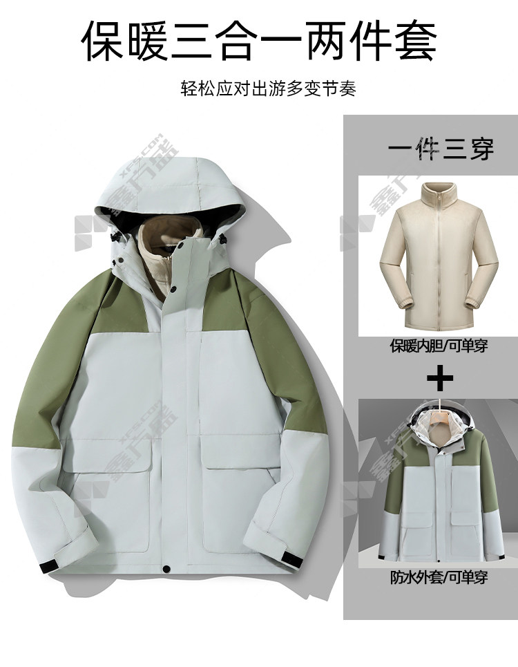 商品名称: 左诗丹伦 9596 带帽 三合一可拆卸冲锋衣 M 豆绿拼黑色