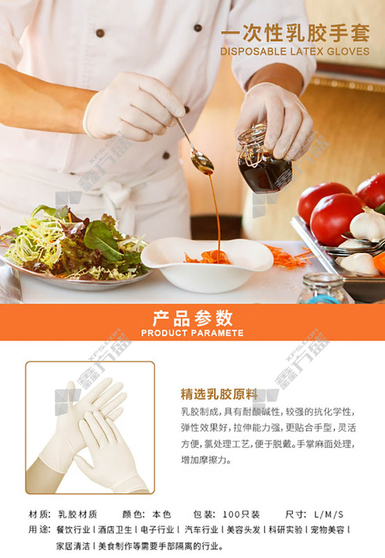 一次性乳胶手套包装数量:100只装