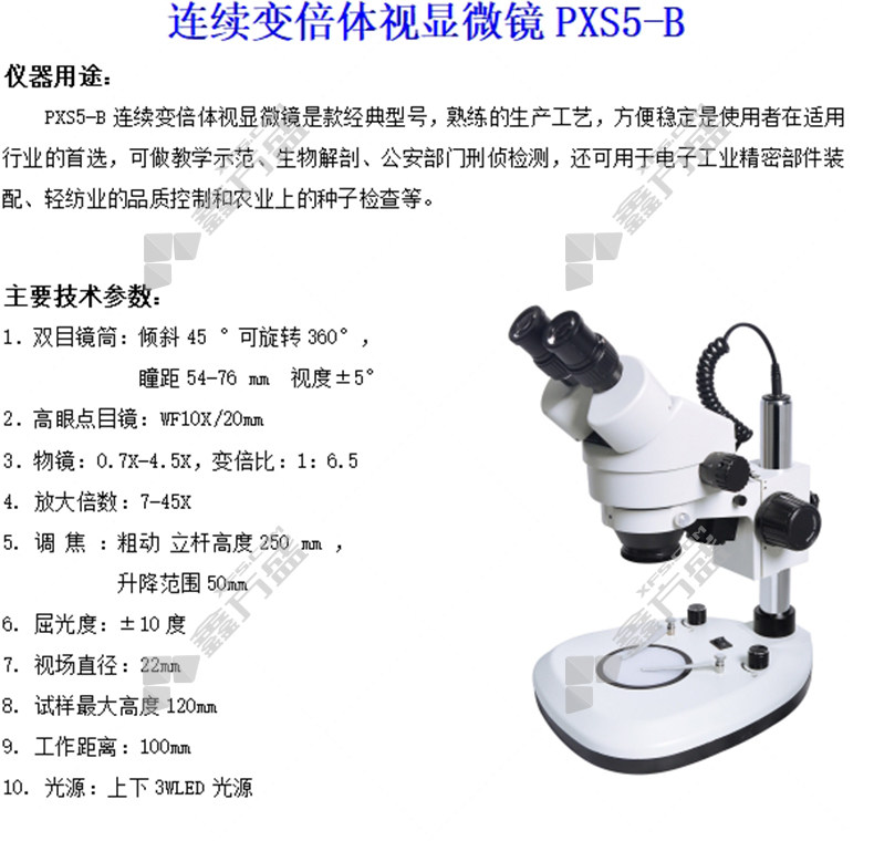 商品名称: 测维 双目连续变倍体视显微镜 7-45倍 PXS5-B