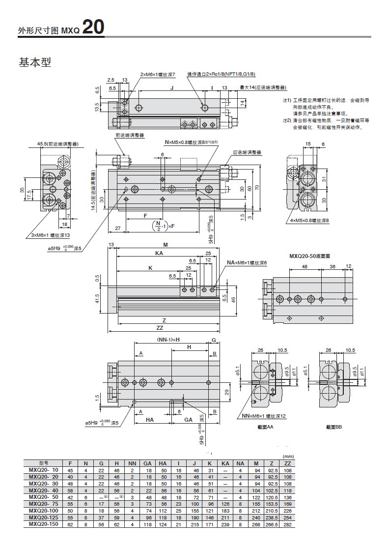 商品名称: 谦华智科 MXQ系列 精密滑台直线导轨 滑台气缸 MXQ16-30 16mm 30mm